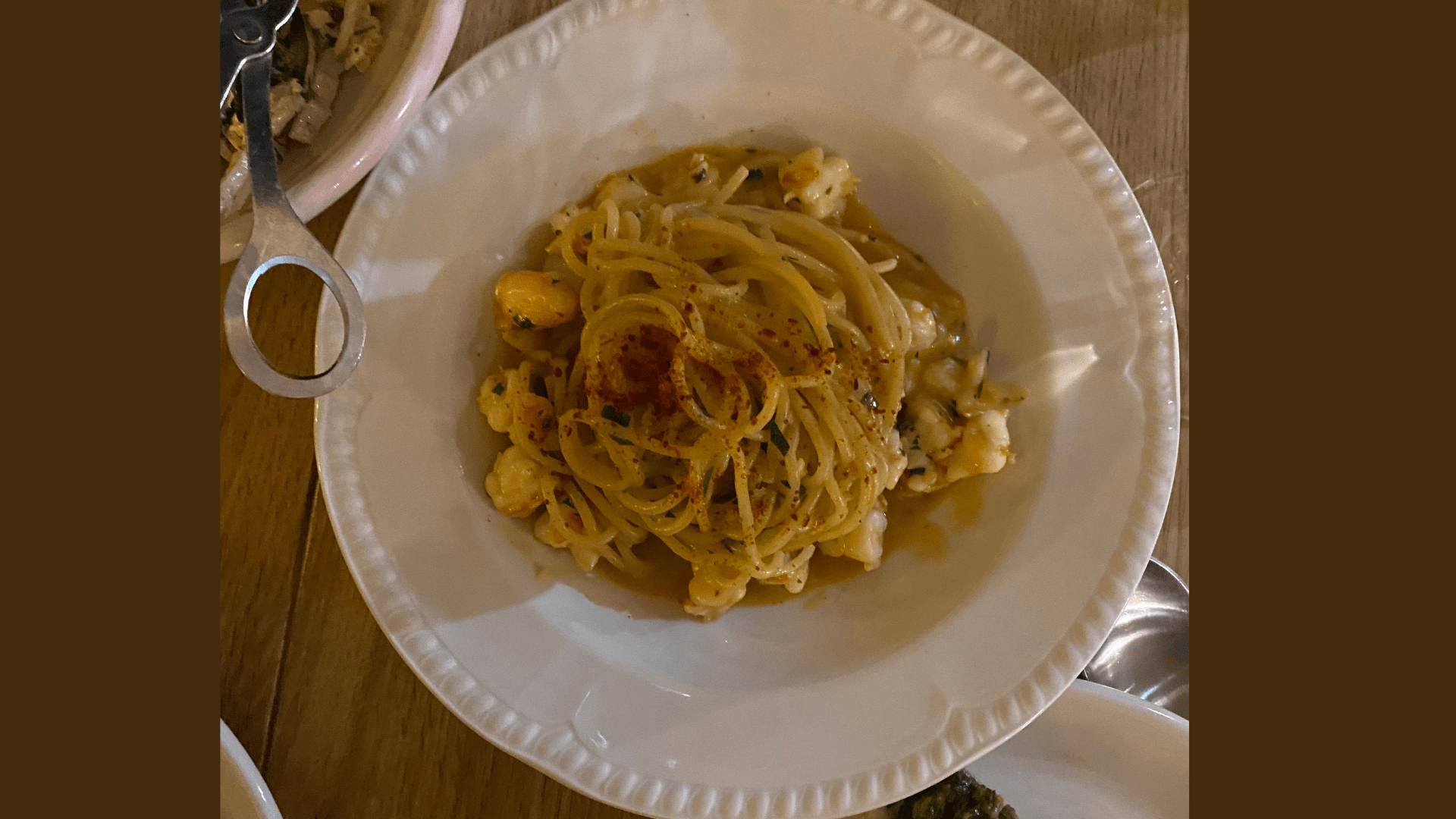 To start, they were served generously portioned scallops Rockefeller, which were topped with a delectable sauce. They ordered spaghetti with garlic chilli oil and king prawns, lamb shoulder with broccoli gremolata, pomegranates, za’atar, and Angus short ribir main course skewers. All the dishes were beautifully presented and delicious. Regrettably, they were too satiated to sample any dessert.
