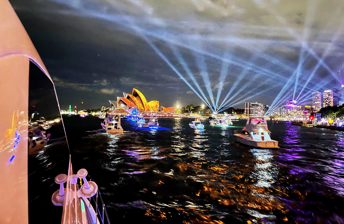 Following the success of our last year’s VIVID event, we recently organised another weekend gathering for owners and guests to enjoy Sydney’s Vivid festival from the water.
